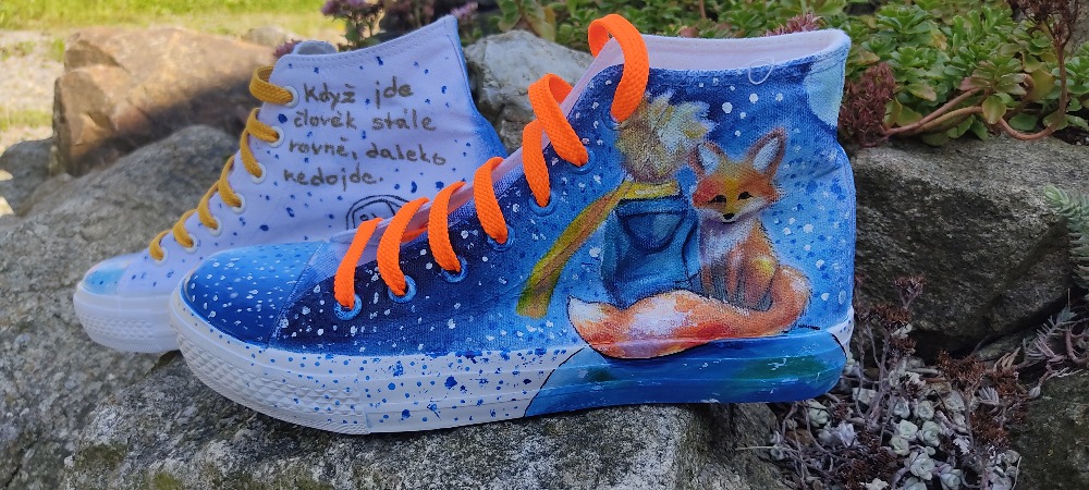 Společně doladíme detaily návrhu a cenu od 499,- do 2999,-. Cena se odvíjí od složitosti motivu a jestli budou tenisky nízké nebo kotníčkové nebo dětské.
